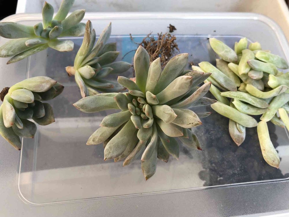 邪魔な葉っぱ取ってたらけっこうな量になった…葉挿しが捗るな〜((((;°Д°;))))カタカタ