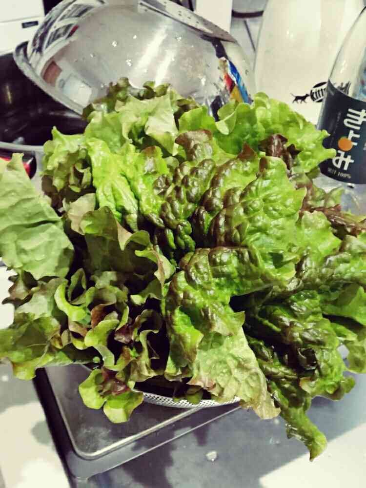 今日の収穫。大量!秋は花にも野菜にも良いですね。種から育てて作りすぎたチシャ。