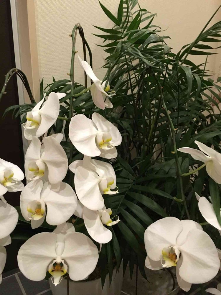フツーのおばちゃんちに胡蝶蘭が10鉢集合😳またまだ綺麗だから、椰子とコラボさせて南国ホテルの妄想に落ちていく私😁