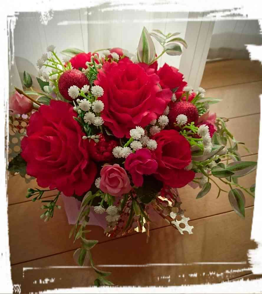 赤が好きと聞いていたので真っ赤なバラをメインにアレンジ🌹