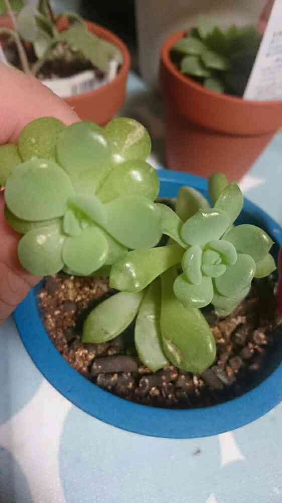 親株のダイソー産エケベリアなんですけどもね、そろそろ葉の形に種類の特徴が出始めてきてるんじゃないかって思うんだけども、この色味でこんな爪の目立たない丸い葉のエケって何があるんじゃろ