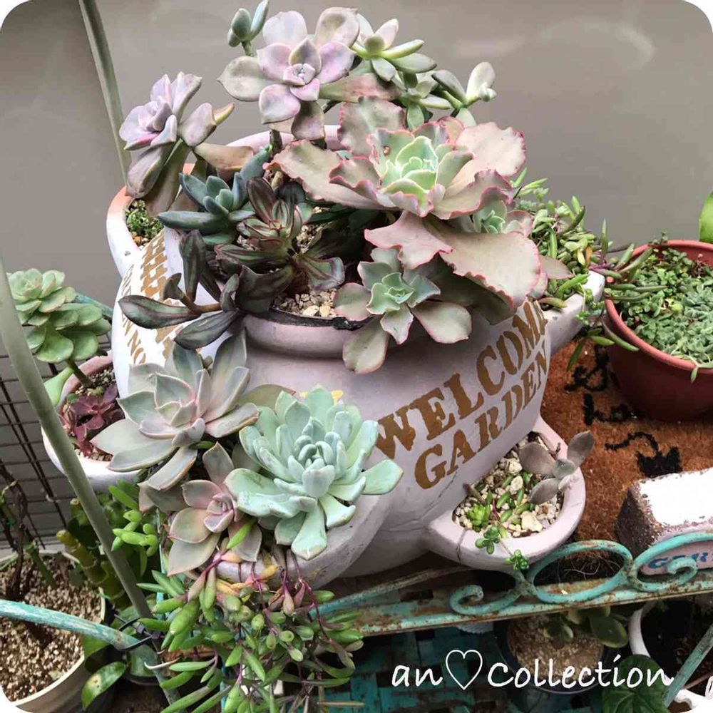 ストロベリーポットに多肉ちゃんって、私もアイデアパクり(笑)
