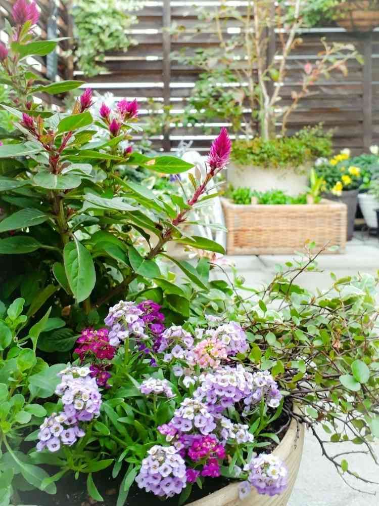 バルコニー/ベランダ,スイートアリッサム ,セロシア(ノゲイトウ)の投稿画像