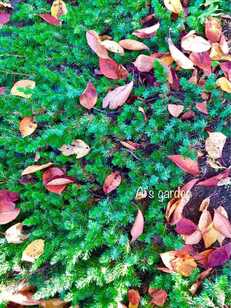 ハイビャクシンの上に落ちる枯葉🍂