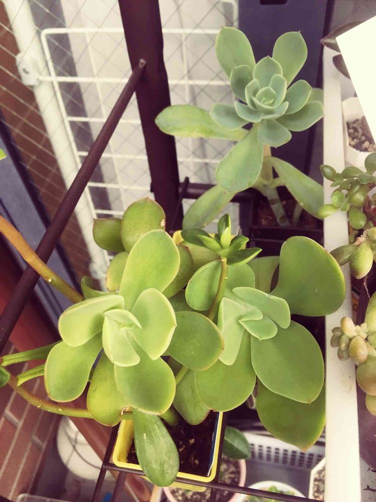 ダイソー産徒長ヒョロヒョロエケベリア ちゃん❣️ひと夏超えてようやくエケベリア らしいお姿に‥ チョンパして仕立て直すかな?思案中🤔