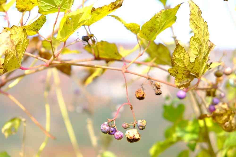 青や緑や紫の色とりどりの実がたくさんぶらさがって、うっとりするくらい光っていました。