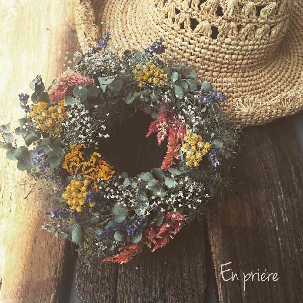 ドライフラワーや季節のお花を使って小さなリース屋さんをしています。
