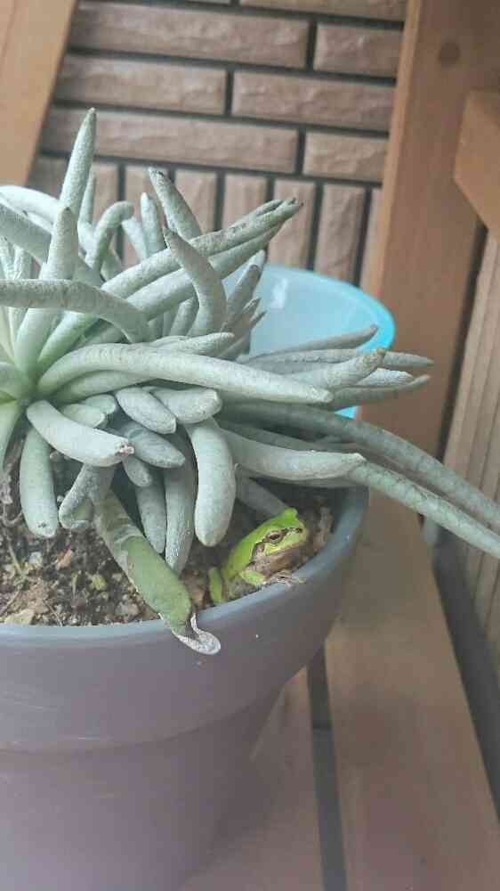 元気がなくなってる新月さんに、カエル🐸が遊びに来てくれました😍