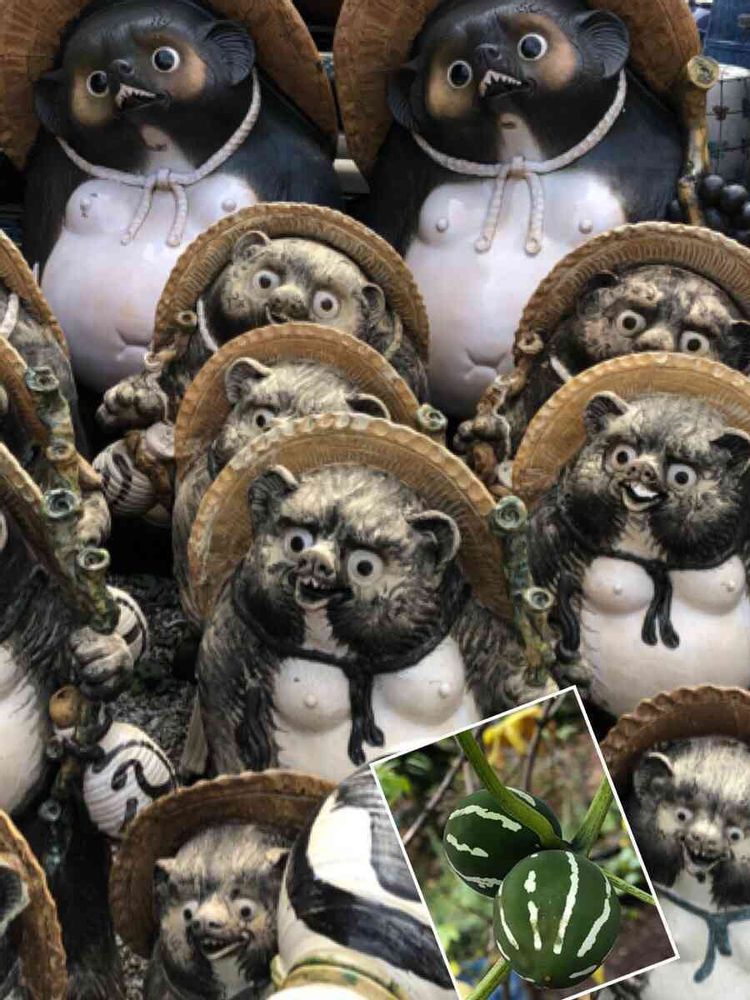 花壇のタヌキさん、床の間のタヌキさん、玄関のタヌキさん達、皆出ておいで🦝🎵