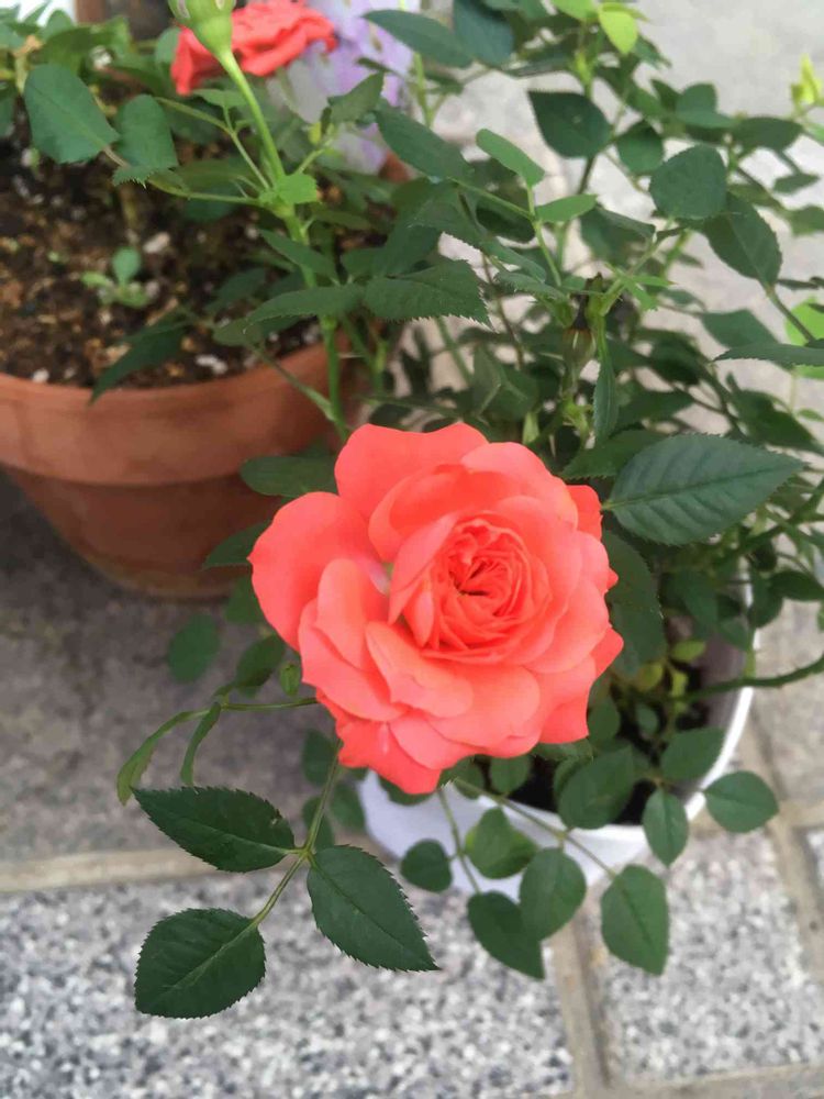 このオレンジは先日園芸店からお出迎えしたばかりなんです😊だからまだつぼみがいくつかついている状態。