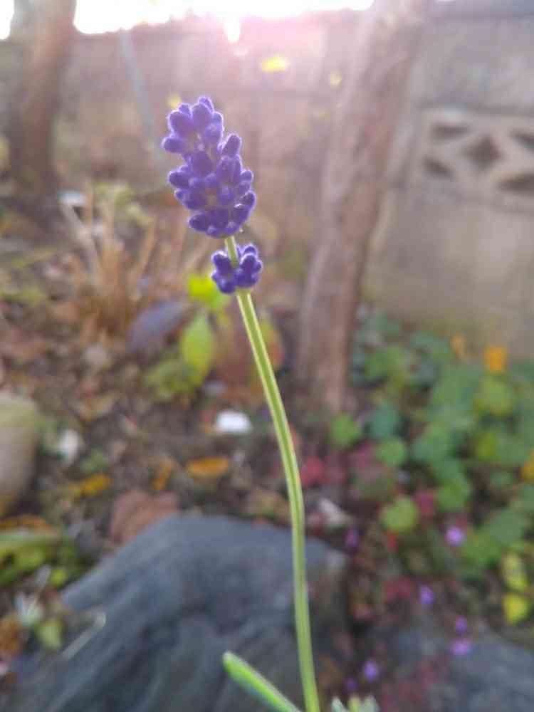 ラベンダーも季節を勘違いしたのか、何もなくなったお庭で一輪咲いてました。