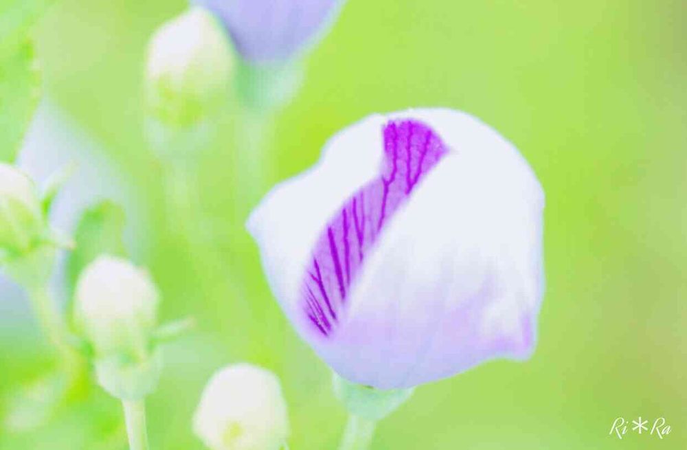 キキョウの蕾がちょっとだけ開きかけていて、そこから花の中の模様を撮っちゃいました〜😁🎶せっかくぷっくり膨らんでるのに、外見撮らないのかよ!って言われてそうです😅