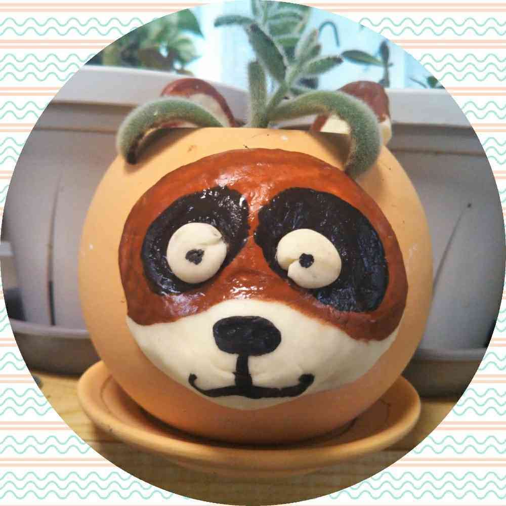 なんと、小麦粉を粘土の代わりにして植木鉢にペタペタ貼って、タヌキの顔を書いてくれました🤭💖