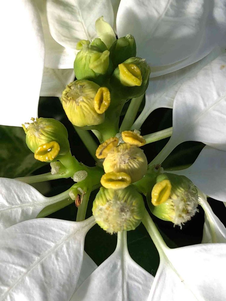 うちの素敵な白いプリンセチアさんに変な唇💋オバケがいるんです〜(´⊙ω⊙`)