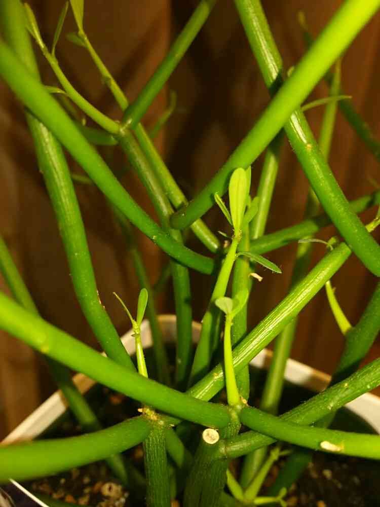 ミルクブッシュの新芽が結構な早さで伸びてます💦葉がついている部分がニョキニョキと。