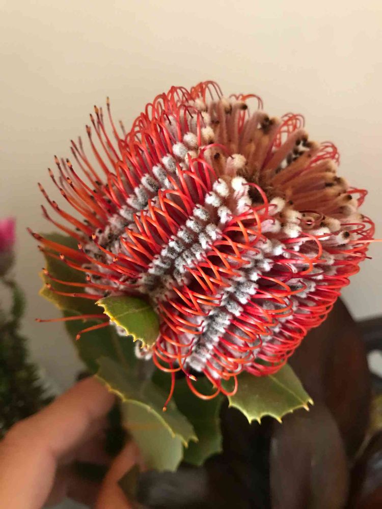 本当に珍しい花ですねー🌸初めて見る植物ですがバンクシアスカーレットですね😃さとしさん育て方難しいですか?珍しい花見せていただきありがとうございます😊