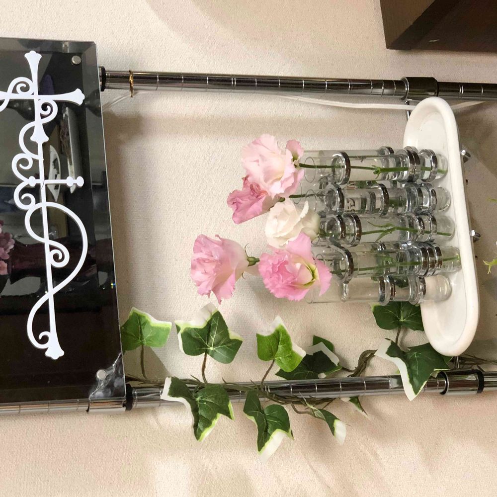 壁掛け仏壇「鏡壇ミラリエ」に今日(11/8)の誕生花の「プリマドンナ(八重咲土耳古桔梗)」を飾ってみました。