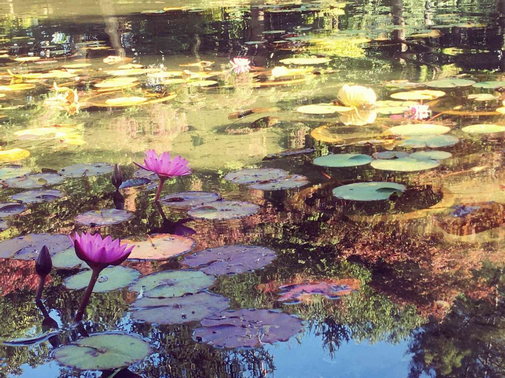 水面に映っている景色も優しい光も😳睡蓮も蓮も大好き❤