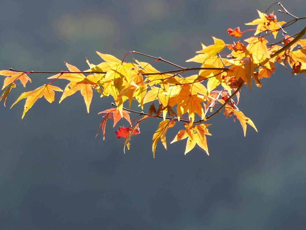 さん、黄色→赤の色変化は環境によるそうで、赤く染まる個体も有れば、黄色のまま落ちてしまう個体もあるの。