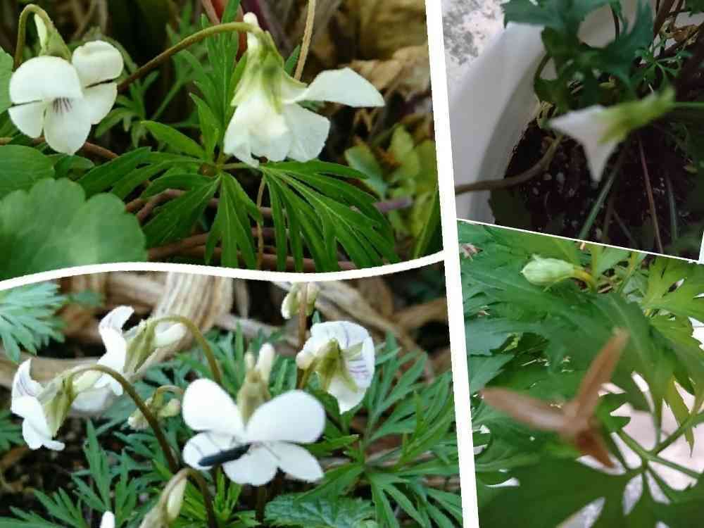 今日のお花はすみれなのでまだ咲いてないかなと、思って見たら、玄関ポーチのところで咲いて、種になってたり蕾だったり、してました。左の2枚は、今年の春にさいたものです。
