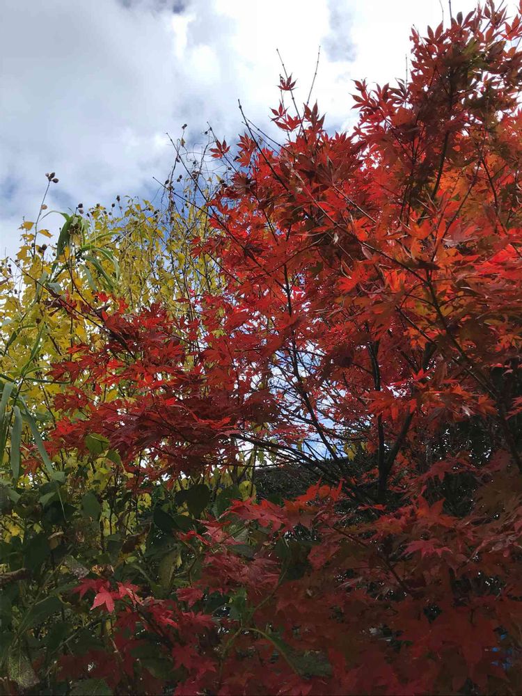 ムクゲが黄色く色付いてもみじの真っ赤とならんで綺麗🍁