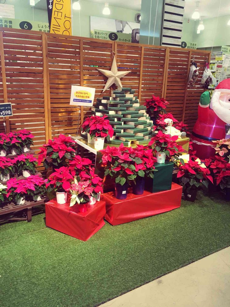 ポインセチアもたくさん並べて、チラッとサンタさんまで🎅❣️