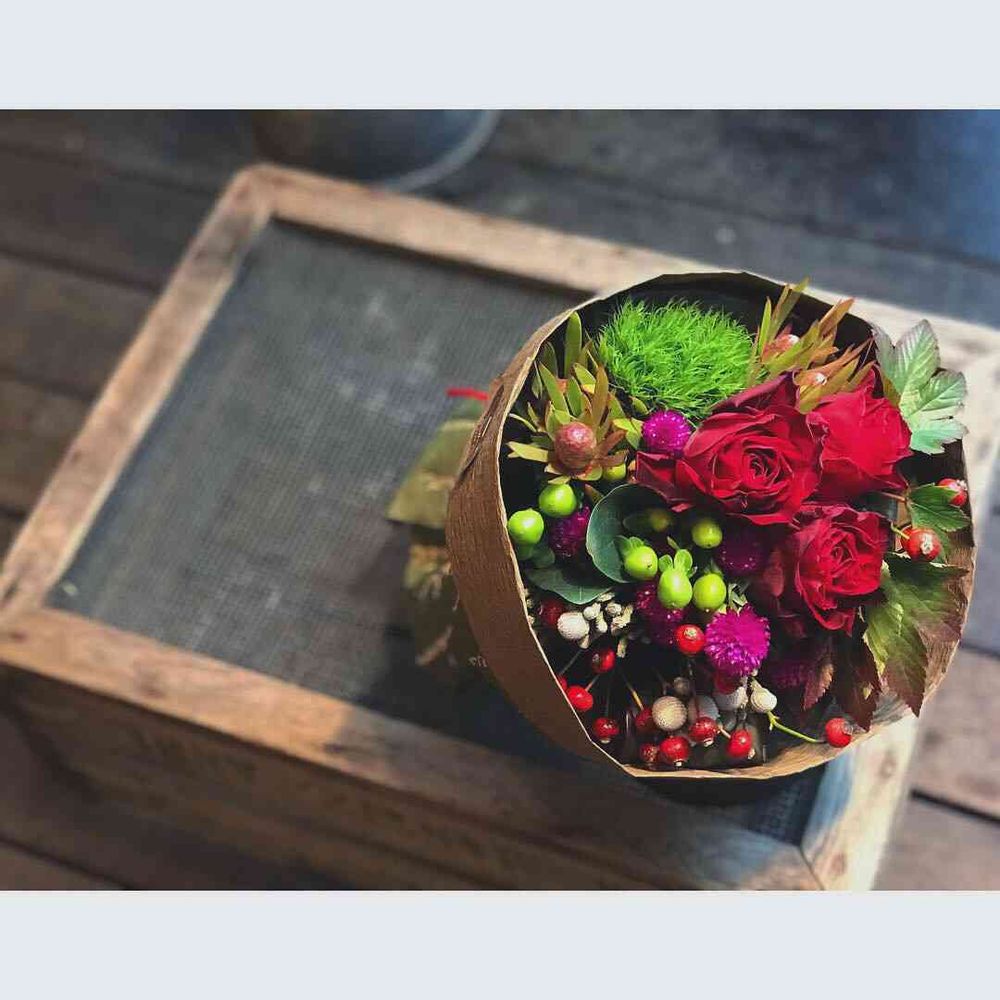 お礼に赤いバラを入れて秋の雰囲気にして欲しいとのご要望でした☺️
