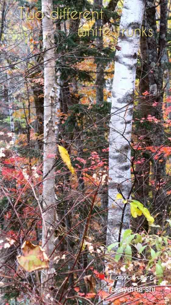 新穂高ロープウェイのしらかば平駅(標高1,308m)付近で並んで生える白樺とダケカンバを見つけた。ともに白い幹が映える。🌲🌳👀👍