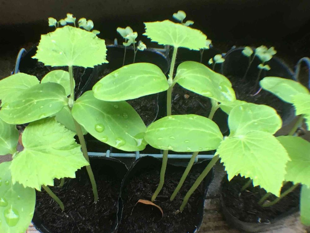 キュウリその後、本葉がなかなかなので、そろそろ植え付けちゃおうかな〜〜