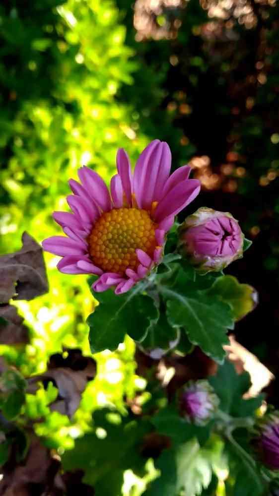 朝日を浴びて陰影が出来、いい背景になって菊が浮かび上がりました🤣