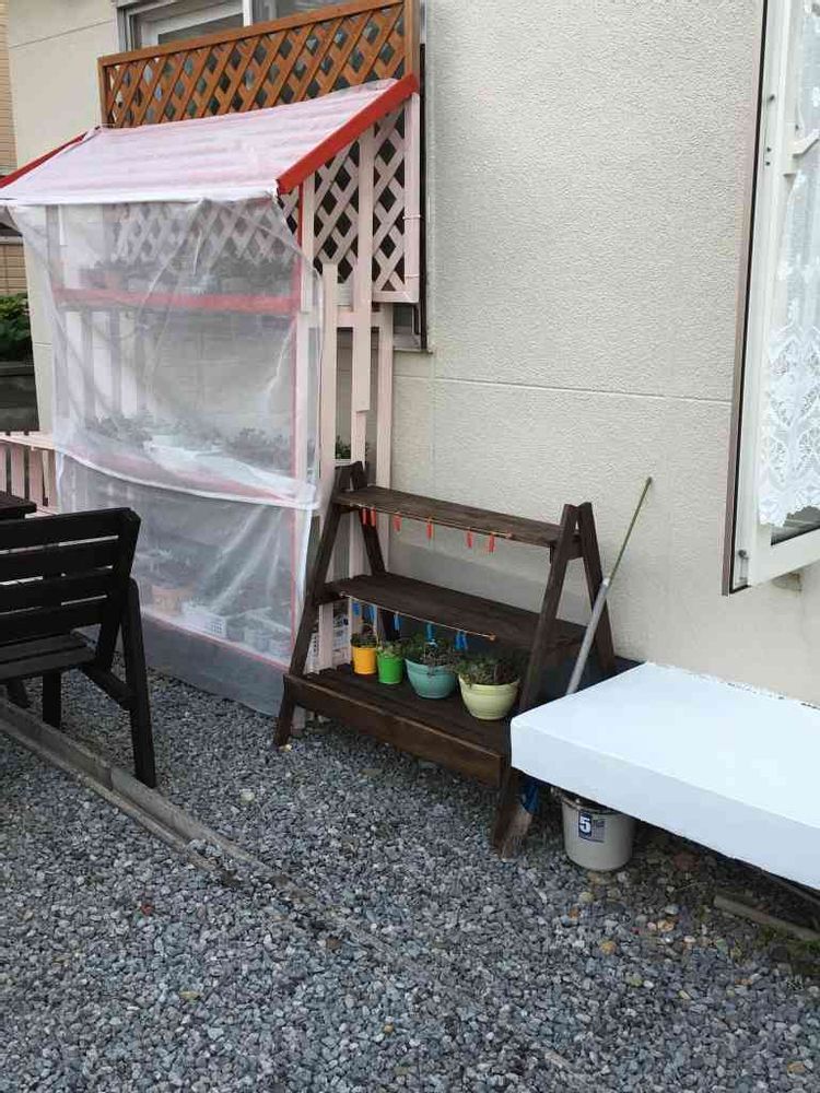 後朝から帰りも遅い為 日焼け(葉焼け)防止です。雨なども直接当たるよりはましかとおもいました。寒冷紗掛けてます。初心者なので正解が解らないです🍀