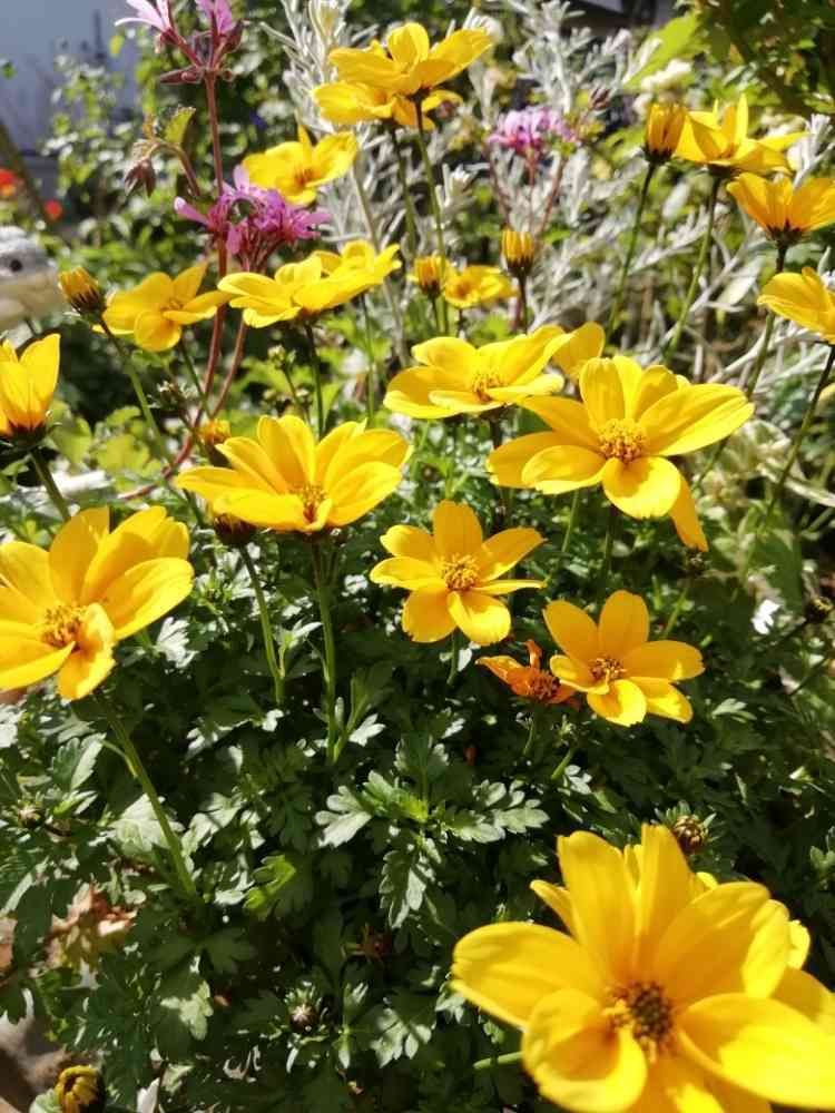 暑い位の日射しに ビデンスもキラキラ輝いています。