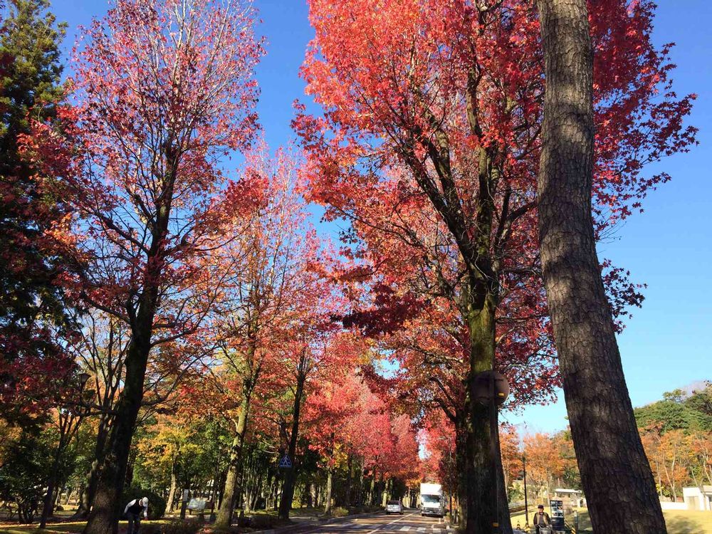 先日、天気の良い日に金沢市内にドライブに行ってきました。市役所前のアメリカ楓通りです。^ ^