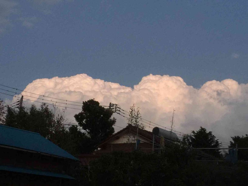 今日は、23°C位気温が上がり、夕方まで暖かでした!東の空に、黒い雲と、入道雲らしき雲が入り混じって、今にも降って来そうな空模様でした。車椅子の母を連れていたので、足早に帰宅しました。雨は、10粒ほどしか当たりませんでした!良かった😊💦