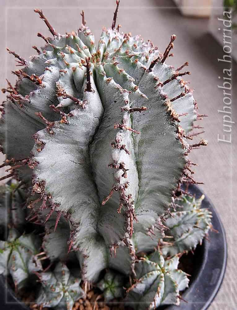 通販で多肉を買ったらおまけでいただいた……買ったものより大きかったホリダ。当初は周りに小さい子株が二つほどあるだけでしたが、3年目の今では子株もどんどん増えて群生株になり、親株も、稜にうねりが出て風格が出てきました。