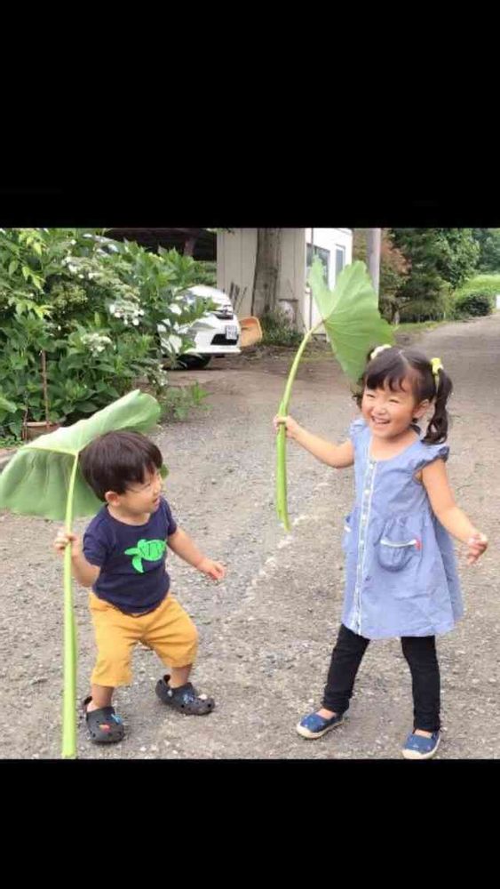 と大きな里芋の葉を貰って幼稚園で習ったお歌を大きな声で歌いながらはしゃぐお孫ちゃん❤︎