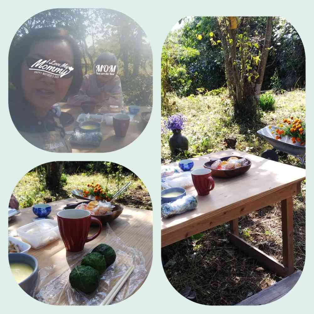 車庫を職人さん達の休憩所にしてるので、私と母は、お外で~💕