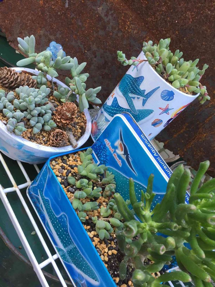 お魚の缶を鉢にしていて可愛い〰️🐟