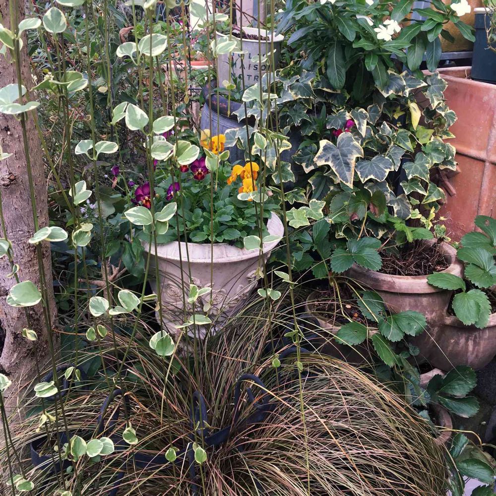 ツルニチニチソウ、こんなに枝垂れてくるんですね(*゚∀゚*)