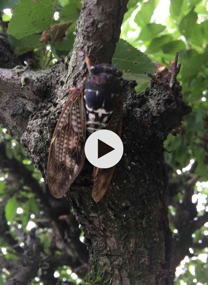 梅の木に、今年初のアブラゼミ( ゜ з゜)~♪