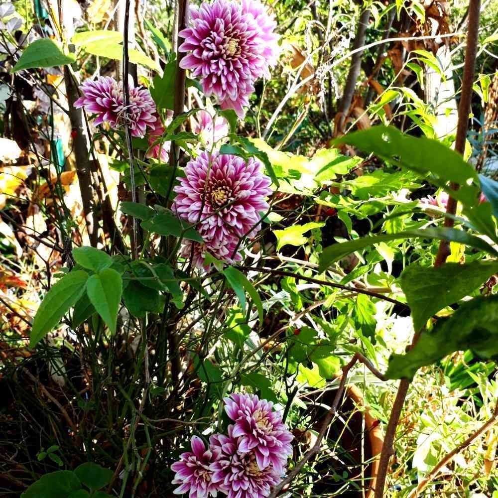元々は真っ直ぐ咲くのでしょうが、支柱をしてないのでハイノキの寄せ植えにもたれかかるように咲いています✨