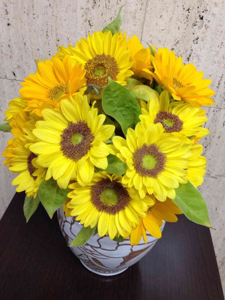 職場のロビーに飾ってあるヒマワリです。まるで造花のように見えますが生花です。^^;