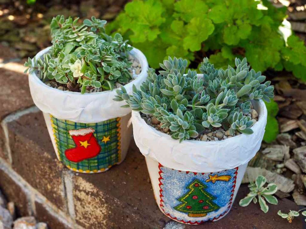 クリスマス柄のペーパーナプキンが家にあったので、以前に作っておいた鉢です(^-^)