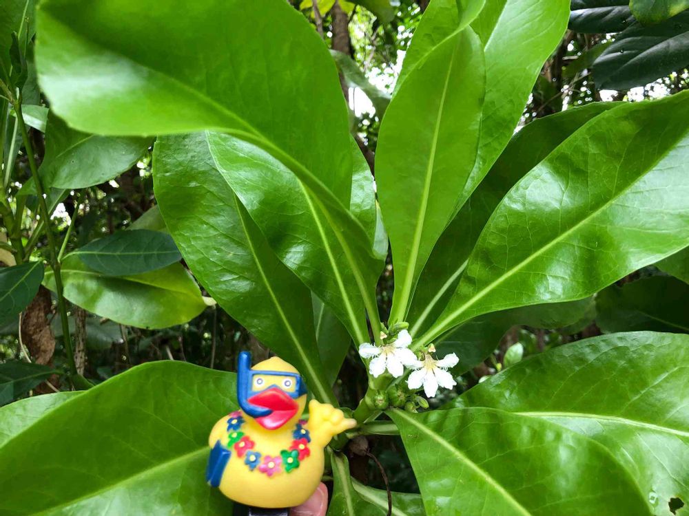 ナウパカには海辺で育つビーチナウパカと山で育つマウンテンナウパカの二種類あります。ハワイの海岸線で見かけるナウパカはビーチナウパカです。葉が肉厚で丸い形をしています。このマウンテンナウパカはホウマルヒア植物園で見つけました。葉が柔らかくうねりを持っていました。葉先が尖っているのが特徴的でした。