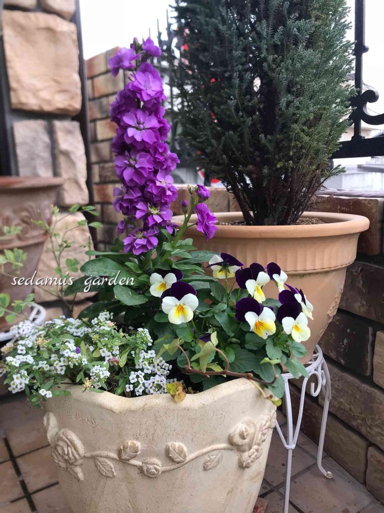 先月、気温が15度までにと頑張った寄せ植え。