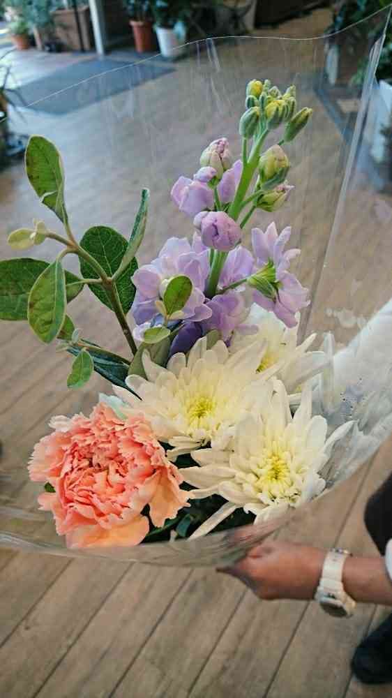 今日のお題のスプレー菊この花束の白いスプレー菊かなり豪華でお客様、喜ばれていました。(^ω^)