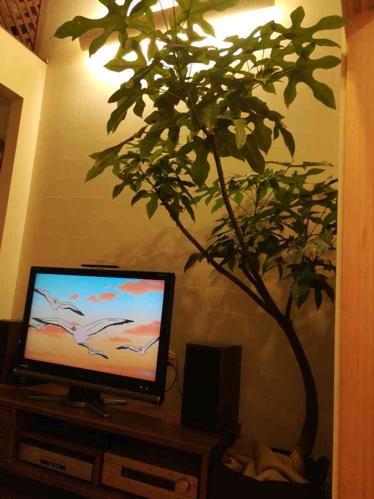 パキラのような樹形で背丈は今170㎝くらいあります。葉っぱは手を広げたように五つに別れていて繋がっています。