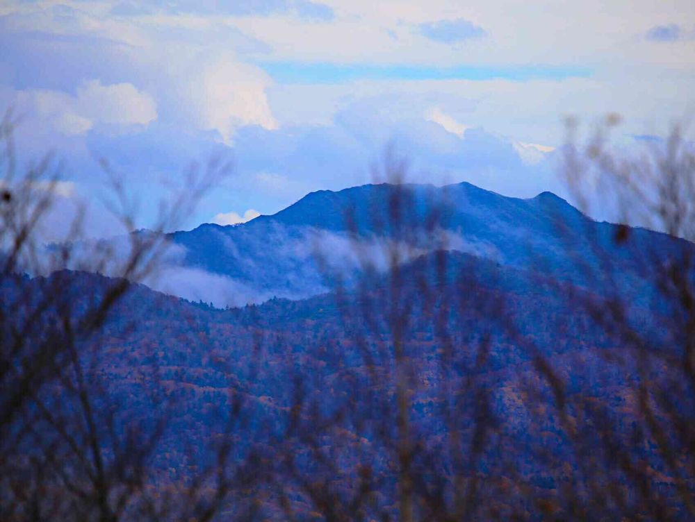 雑木の葉もすっかり落ち遠くの山々が見える。2018年10月28日