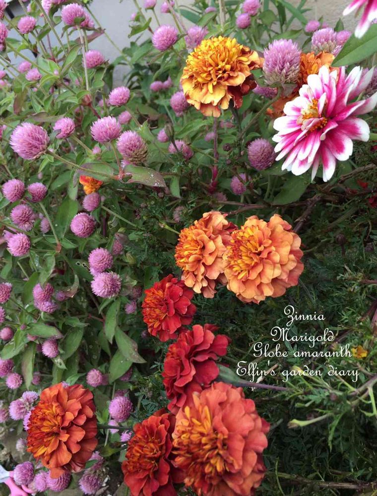 昨日、撮影したフレンチマリーゴールド「ストロベリーブロンド」とセンニチコウと名前のわからないジニアのコラボレーション。まだまだ花壇を賑やかにしてくれています😊