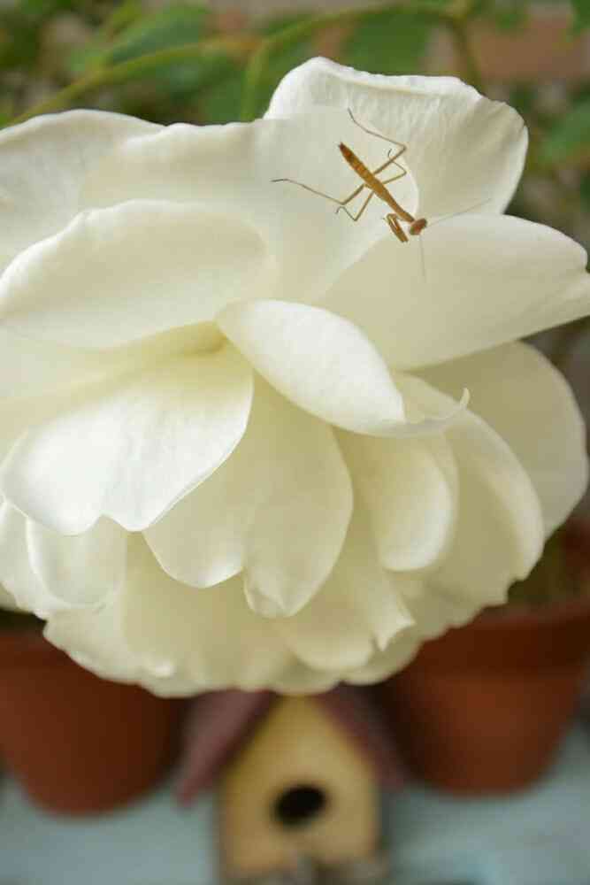 わぁ!カマキリベビー、もぅ撮ってくれたんや♪可愛い(*^_^*)白いバラがなんとも雰囲気があって素敵ですね♪見せてくれてありがとう♪